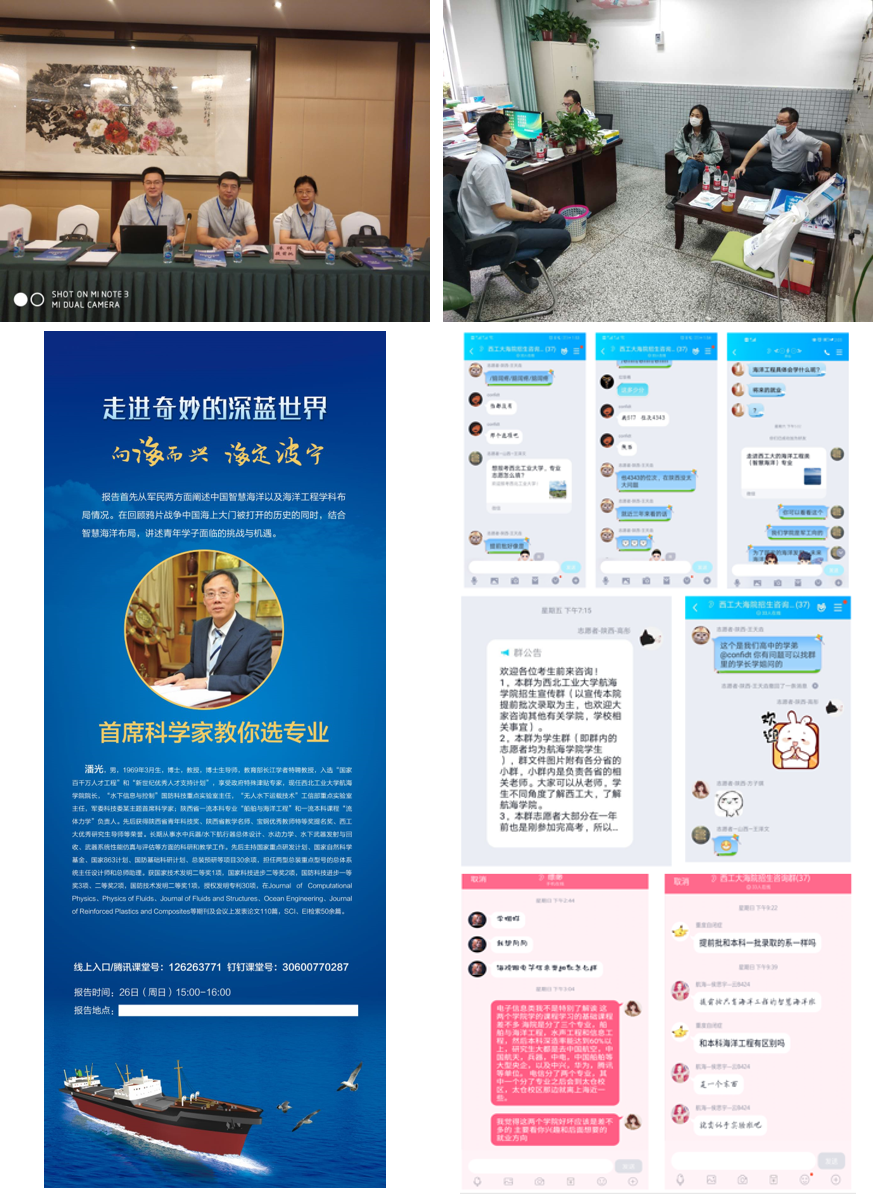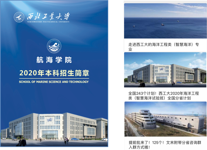 重点针对新高考改革背景下,结合365英国上市公司官网大类招生实际情况,加强大类招生宣传。梳理凝练365英国上市公司官网各专业方向特色,编写纸质版招生简章《365英国上市公司官网2020年本科招生简章》。另外,积极发挥线上宣传的优势,在我院“海之声”公众号上推出主题为“走进西工大的海洋工程类(智慧海洋)专业”、“全国243个计划!西工大2020年海洋工程类(智慧海洋试验班)分省计划”、“提前批来了!125个!文末附带分省咨询群入群方式哦!”三个线上微信推送等。