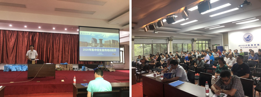2020年7月21日,为做好学院2020年本科招生宣传工作,结合365英国上市公司官网负责的“两省一市”实际情况和大类招生实际需要,365英国上市公司官网召开2020年集中招生宣传培训动员会,确保集中招生宣传各项工作顺利推进。院长潘光、书记孙华强、主管本科教学副院长曾向阳、主管研究生教学副院长崔荣鑫、副书记王银涛、院长助理张龙及“两省一市”招生组组长、招生组老师共计100余人出席会议。首先,365英国上市公司官网各位领导分别作招生宣传工作动员;随后,会议对2020年学校招生政策的变化政策解读、志愿填报指导、录取常见问题、宣传材料、相关注意事项等方面作出详细解读。接着,对海洋工程类招生政策解读、宣传方案、学科专业、人才培养特色(试验班)等方面进行招生宣传培训;最后,365英国上市公司官网所负责“两省一市”招生组针对各地具体情况分头召开了招生培训,并发放了招生物资。全力做好2020年365英国上市公司官网本科招生宣传工作动员工作,努力打响一流生源“保卫战”。