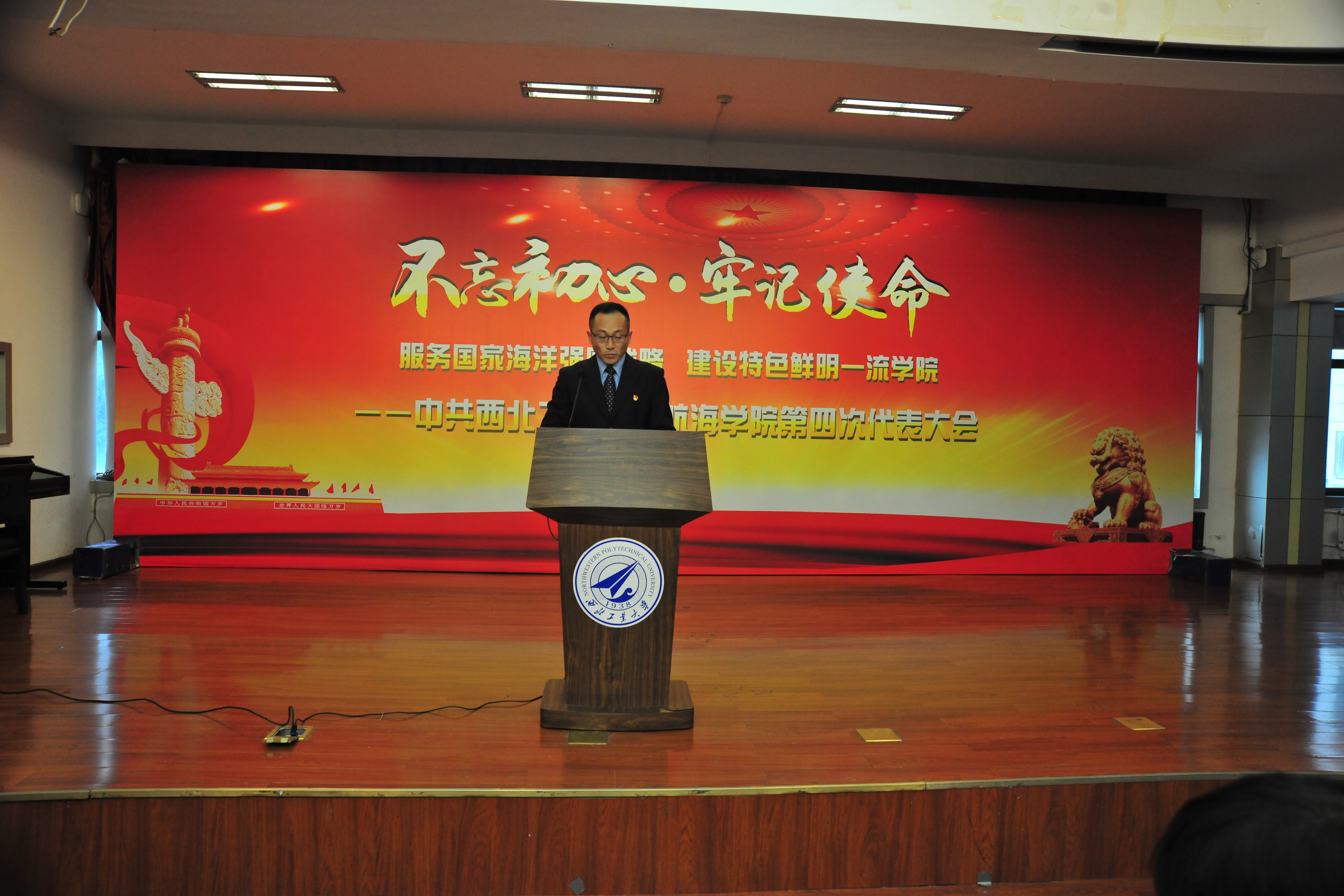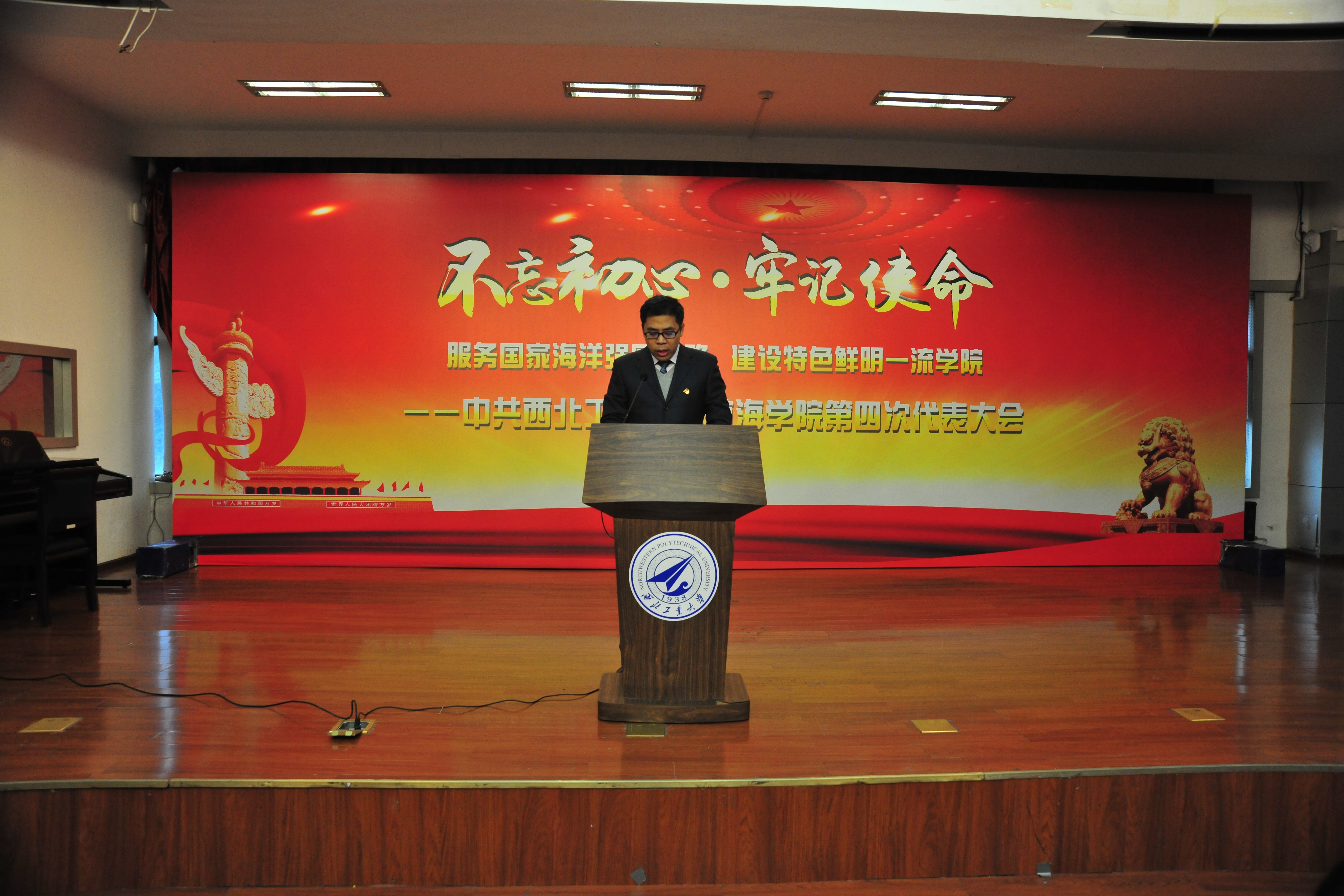 大会在雄浑嘹亮的国歌声中拉开序幕。首先,学院党委副书记(主持工作)孙华强代表中国共产党365英国上市公司官网第三届委员会,作了题为《不忘初心、牢记使命,服务国家海洋强国战略,建设特色鲜明一流学院》的报告,对学院四年来的工作进行了总结和回顾,分析了学院面临的机遇和挑战,展望了未来五年学院下一届党委的工作设想和任务。报告指出,新时代赋予新使命,新发展带来新机遇,新要求提出新任务。我们必须登高望远,忠诚担当,戮力同心,勇往直前,把机遇转化为加快学院事业发展的新优势,把挑战转化为学院向奋斗目标迈进的新动力,主动对标看齐,争创一流,不断提升学院办学水平和核心竞争力,践行为党育人、为国育才的初心使命,落实立德树人根本任务,抢抓机遇,乘势而上,主动作为,在建设海洋强国的历史使命中贡献学院力量!