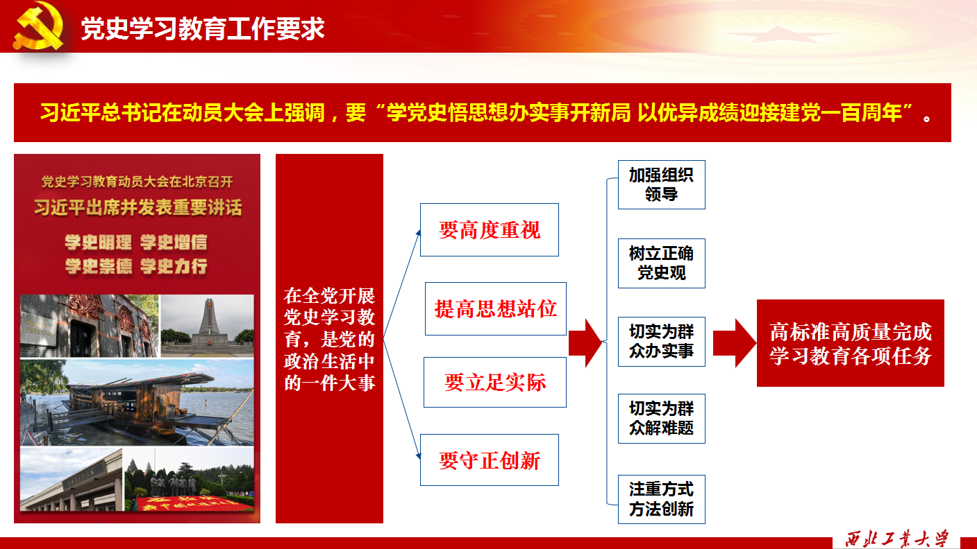 孙华强表示,要充分认识开展党史学习教育的重大意义,切实把思想和行动统一到习近平总书记重要讲话精神上来,增强“四个意识”、坚定“四个自信”、做到“两个维护”,学党史、悟思想、办实事、开新局,以优异成绩庆祝党的百年华诞;习近平总书记关于党的历史的重要论述是当前各级党组织和全体党员学习党史、研究党史、宣传党史的根本遵循,要重点学习领会,进一步统一思想、凝聚中心、开展教学科研,提高工作质量和水平,落实好“十四五”开局之年各项重点任务,用改革发展稳定的实际成果彰显党史学习教育成效;支部书记和学生辅导员要率先领先学习好党史,先学一步、学深一步,夯实基础,提高站位,为组织全院师生党员开展好党史学习教育做好充分的准备;要充分发挥职能作用,聚焦主责主业,精心为党育人、为国育才,挖掘红色资源,讲好红色故事,高标准高质量完成好学习教育各项任务,推动党史学习教育深入师生、深入基层、深入人心。