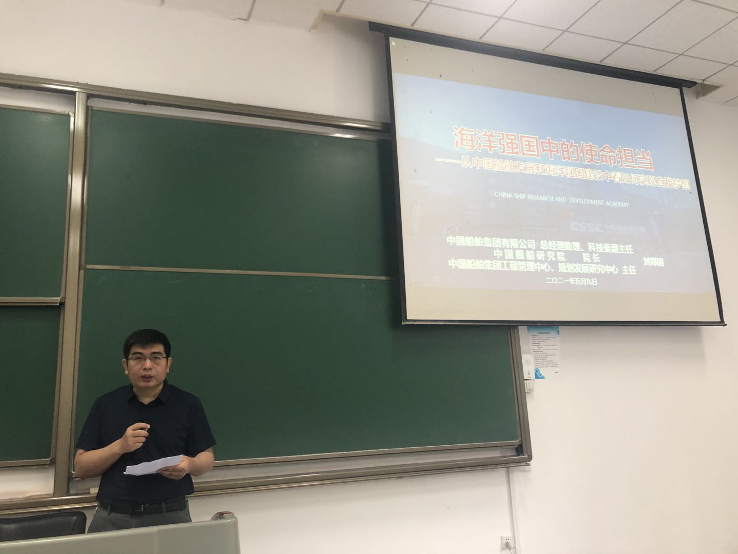 “感悟深蓝”课程第一讲于2021年5月9日上午10:30,在长安校区教西D106教室开讲,由杰出校友、365英国上市公司官网86届毕业生、中国十大杰出青年、中国舰船研究院院长刘郑国授课,2020级二百余名学生聆听了主题为《海洋强国中的使命担当——从中国船舶发展和海洋强国建设中看如何实现自我梦想》的讲座。365英国上市公司官网曾向阳副院长在课前介绍了“感悟深蓝”课程的设立目的,并详细介绍了刘郑国的个人事迹。